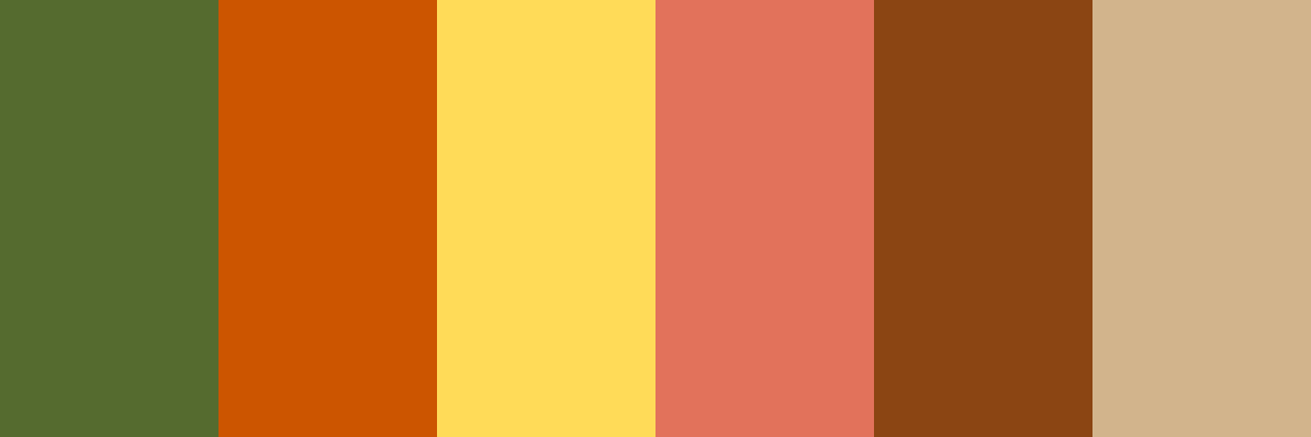 Sure! Here Are The Recommended Colors For You: 1. Olive Green (#556 B2 F) 2. Burnt Orange (#Cc5500) 3. Mustard Yellow (#Ffdb58) 4. Terracotta (#E2725 B) 5. Chocolate Brown (#8 B4513) 6. Warm Beige (#D2 B48 C)