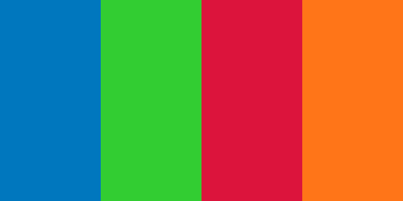 Ocean Blue, Lime Green, Crimson Red, And Pumpkin Orange