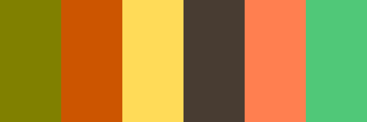 This vibrant and earthy color palette captures the essence of an autumn landscape, combining warm, rich hues with vibrant accents. It evokes feelings of warmth and coziness, perfect for designs that aim to bring a sense of comfort and connection to nature.
