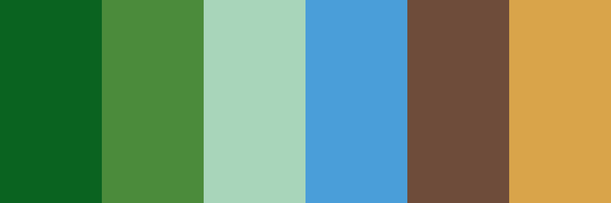 The "Forest Serenity" color palette combines various shades of green with complementary colors that evoke a sense of nature and tranquility. The rich greens symbolize growth and vitality, while the blues and browns provide balance and warmth, making this palette ideal for designs aimed at promoting eco-friendliness, wellness, or organic themes.
