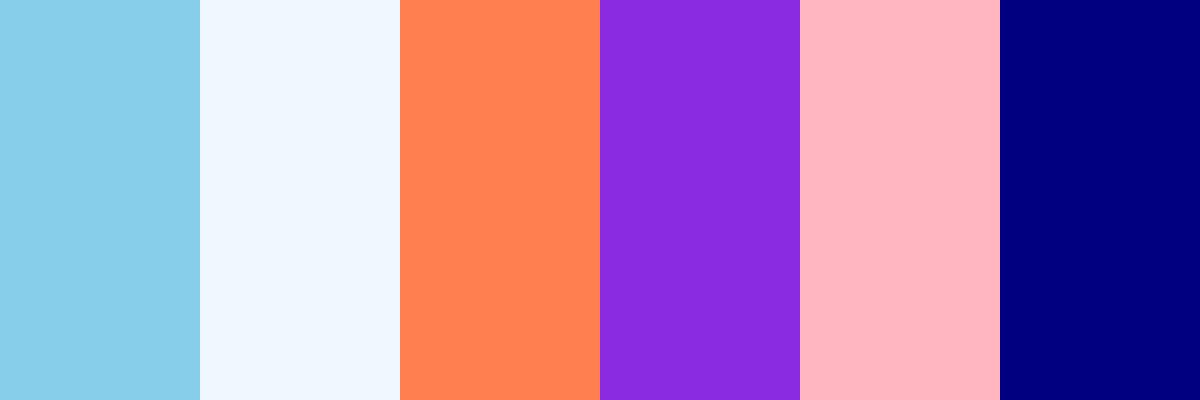 This palette captures the beauty of the sky throughout the day, from the bright blues of midday to the soft pinks and deep purples of dusk and night. Each color harmonizes with the others, making it perfect for designs inspired by the natural sky and its transitions.
