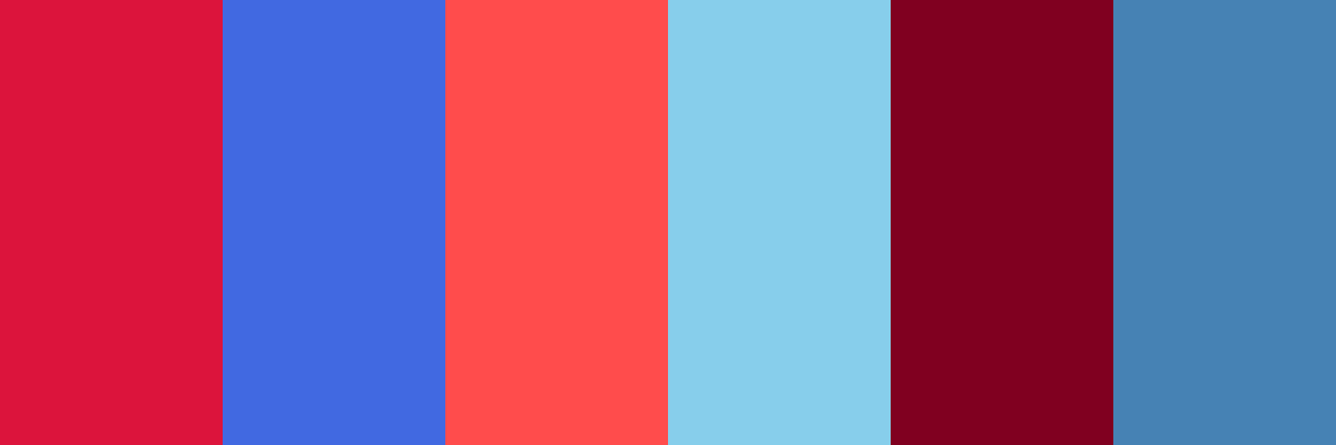 This color palette can be effectively used in branding, web design, or any visual project requiring a bold yet harmonious combination of blue and red tones.