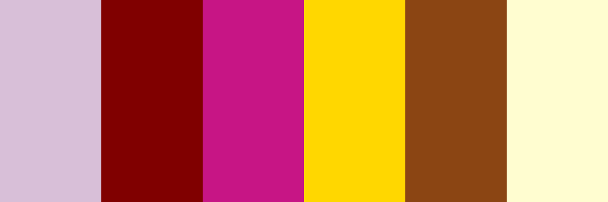 Warm Lavender (#D8 Bfd8) Deep Maroon (#800000) Dusky Pink (#C71585) Golden Honey (#Ffd700) Mocha Brown (#8 B4513)