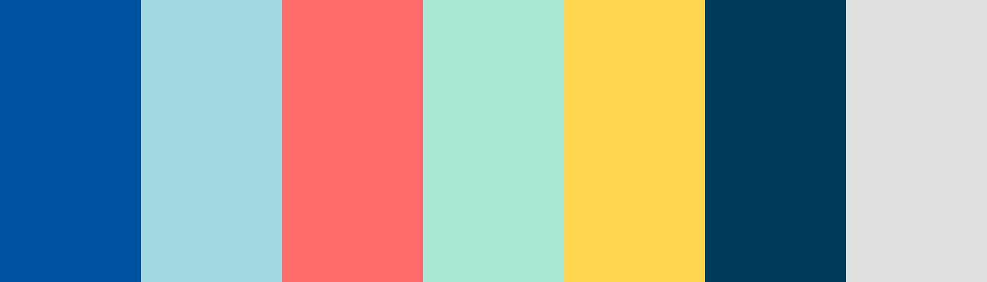 The "Coastal Breeze" palette combines soft and vibrant colors that evoke a sense of calmness and warmth. The light blue and mint green provide a serene foundation, while the coral red and sunny yellow introduce lively accents. The navy blue adds depth, and the light gray offers a balanced neutral tone, making this palette versatile for various design applications.
