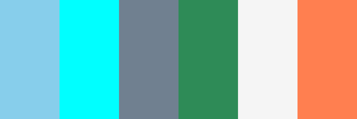 Sure! Here’s a color palette based on your query, featuring the colors Sky Blue, Aqua, Slate Grey, Seafoam Green, and White Smoke: