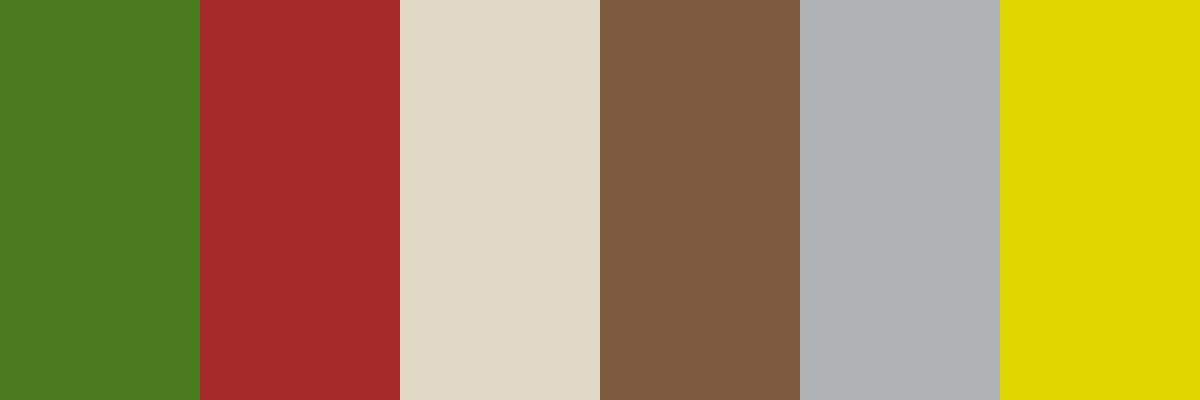 This color palette combines earthy tones with striking contrasts, reflecting the rugged and chaotic world of orks. The deep greens and browns ground the palette, while the reds and yellows add excitement and energy. The inclusion of bone white and battlefield grey provides balance and versatility, making it suitable for various designs, from character concepts to environment art.