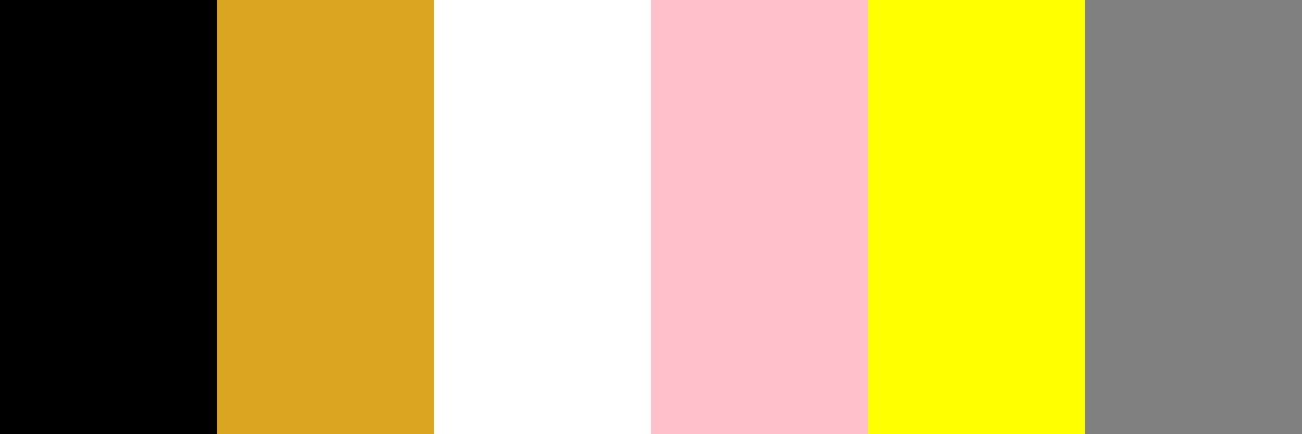 Here's a color palette based on your query that includes black, goldenrod, white, pink, yellow, and gray: