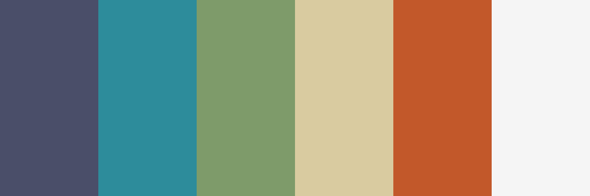 **Palette Description:** This color palette is inspired by the rugged beauty and earthy tones of a rocky island landscape. It captures the essence of natural elements such as stone, sea, and foliage, providing a harmonious blend of cool and warm hues that evoke a sense of tranquility and groundedness.