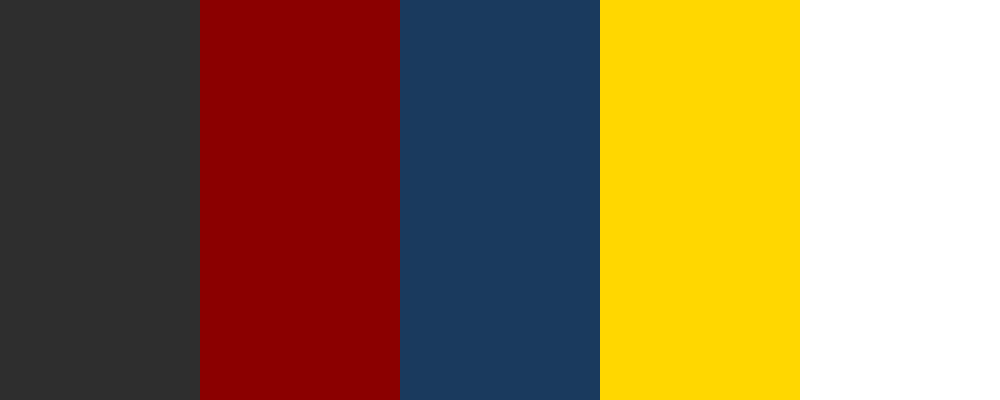 #2 E2 E2 E (Charcoal) #8 B0000 (Crimson) #1 A3 A5 E (Deep Blue) #Ffd700 (Gold) #Ffffff (White)