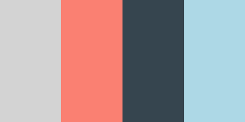 Light Grey: #D3 D3 D3 Salmon: #Fa8072 Charcoal: #36454 F Light Blue: #Add8 E6