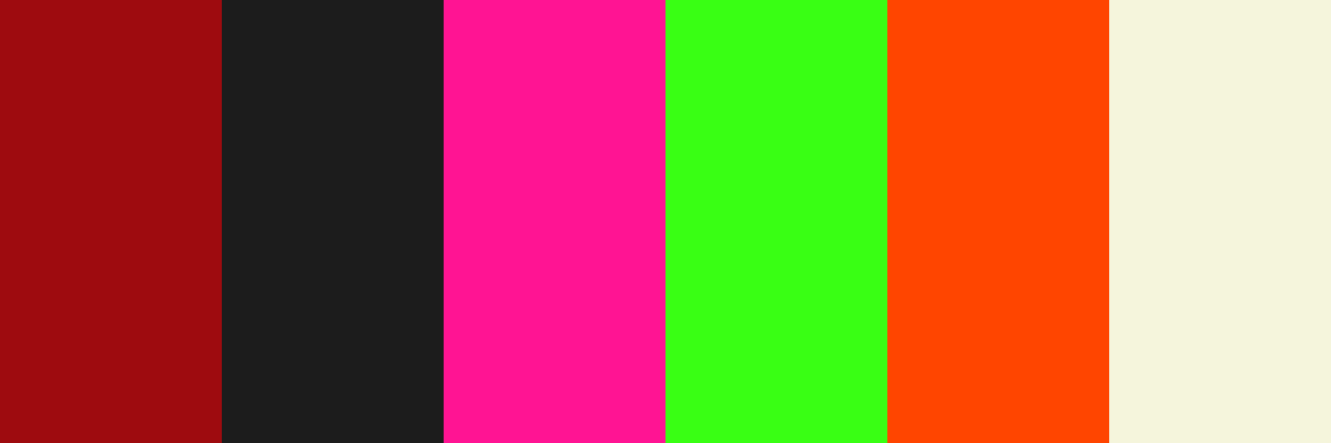 This color palette captures the essence of a whimsical Dragonborn sorcerer who wields shadow magic with flair. The combination of deep, rich tones like Deep Crimson and Pitch Black establishes a strong foundation, while Electric Pink and Neon Green inject a sense of playfulness and energy. Burnt Orange adds warmth and creativity, and Bone White offers a soft contrast, bringing harmony to the overall scheme. Perfect for designs that aim to convey a blend of mystery, magic, and whimsy.