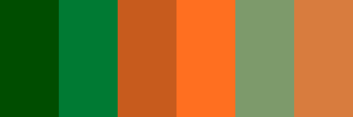 "Forest Flame" is a dynamic color palette that beautifully contrasts the richness of dark greens with the vibrancy of oranges. It is inspired by the interplay between nature’s lush greenery and the fiery hues of a sunset. This palette can be used effectively in designs that aim to convey energy, warmth, and a connection to nature, making it perfect for branding, outdoor products, or lively event promotions.