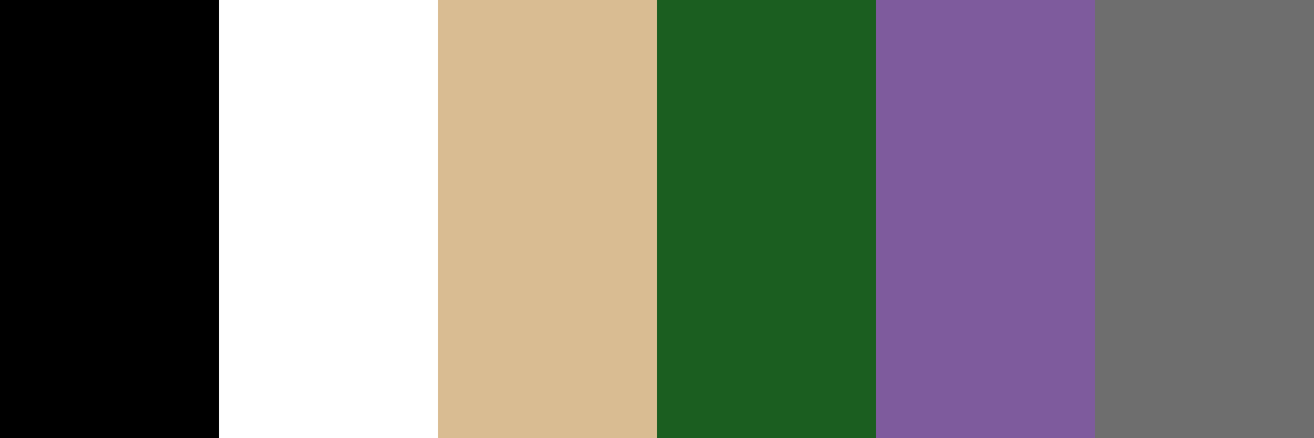000000, ffffff, d9bc92, 1b5e20, 7E5B9D, 6e6e6e