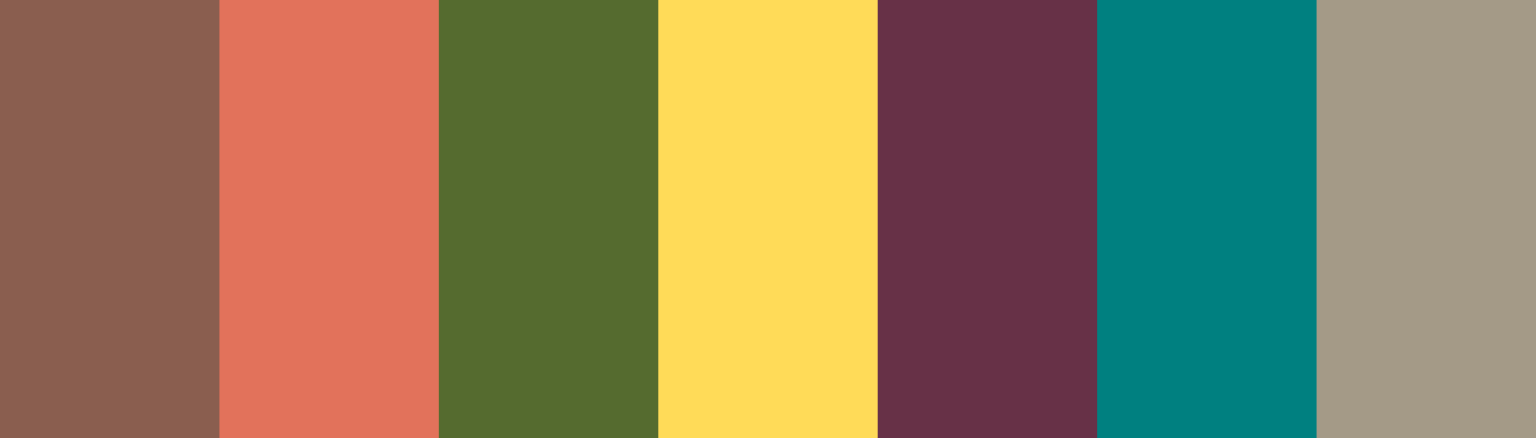 This palette offers a blend of warm and cool tones that harmonize with medium-to-deep brown complexions. The combination promotes a vibrant yet balanced aesthetic that can be used in fashion, interior design, or graphic design projects. Each color is chosen to enhance the natural warmth of the complexion while providing a versatile range for creative expression.