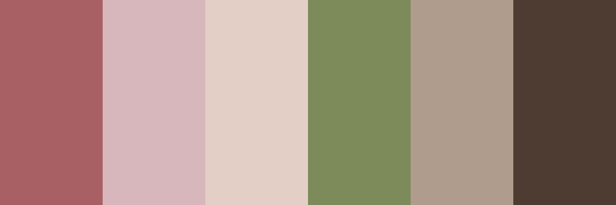 This warm earthy palette draws inspiration from natural elements, creating a cozy and inviting atmosphere. The combination of muted pinks, neutral beiges, and rich browns evokes feelings of comfort and tranquility, making it ideal for designs that aim for a warm, rustic, or vintage aesthetic.