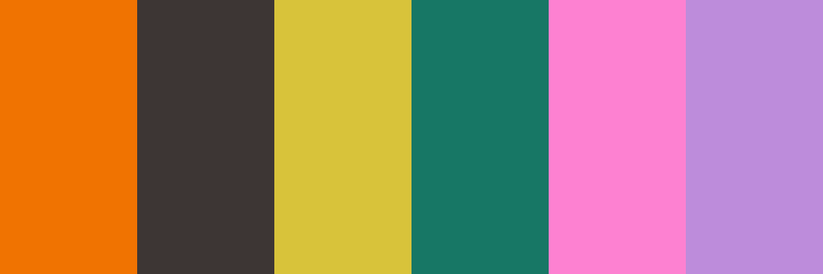 #F07301, #3 D3634, #D8 C33 A, #177765, #Fd81 D1, #Bd8 Cdb, #A96064