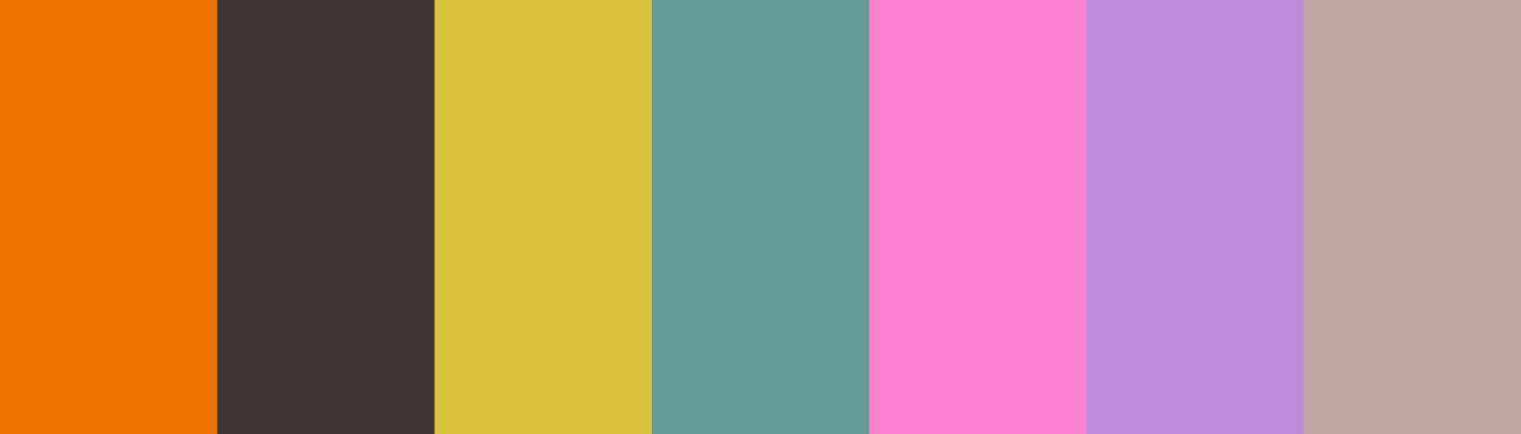 #F07301, #3 D3634, #D8 C33 A, #649 C9 A, #Fd81 D1, #Bd8 Cdb, #Bfa6 A0