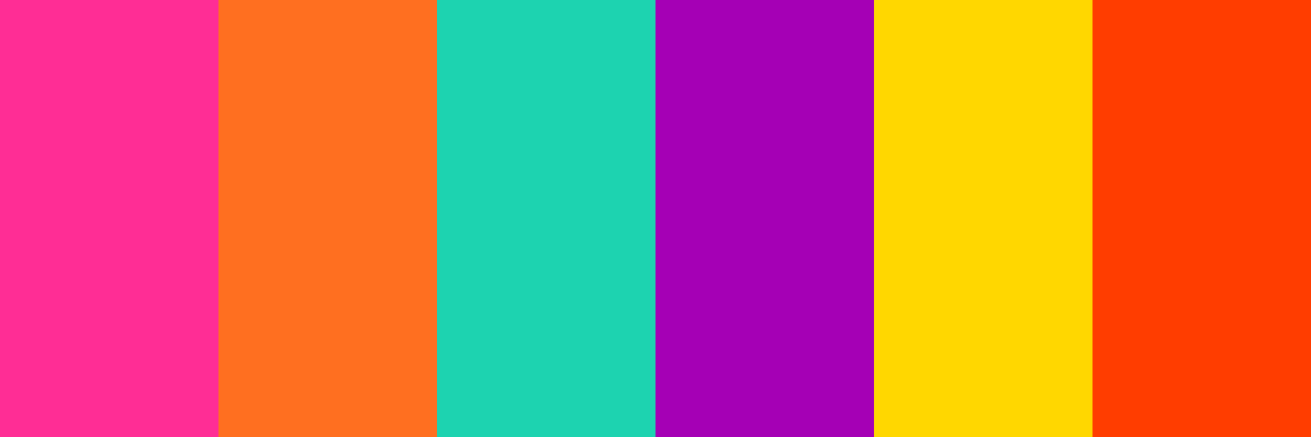 This vibrant color palette is designed to evoke a sense of excitement and energy. It features a mix of bold and lively hues that can be used to create dynamic designs, perfect for events, festivals, or anything that celebrates creativity and enthusiasm. Each color complements the others, making it easy to combine them for a striking visual impact.