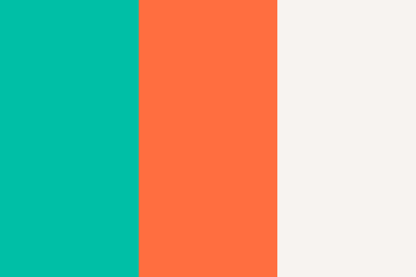 This color palette, named “Tropical Breeze,” harmonizes the refreshing and invigorating essence of teal green with the warm and cheerful tones of warm orange, balanced by the soft and gentle nature of dusty white. It evokes a sense of relaxation and joy, making it perfect for projects related to travel, hospitality, or wellness.