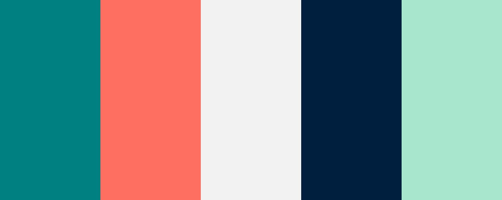 Main Color: Teal (#008080) Accent Color: Coral (#Ff6 F61) Background Color: Light Gray (#F2 F2 F2) Text Color: Navy Blue (#001 F3 F) Highlight Color: Soft Mint (#A8 E6 Ce)