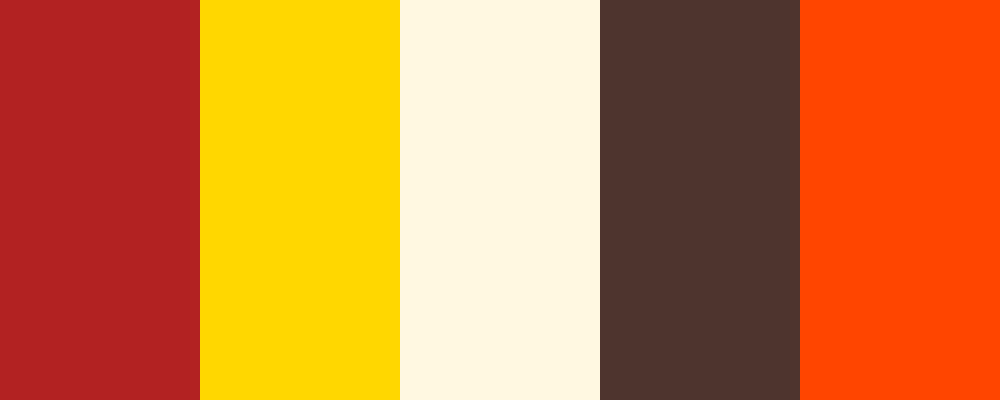 This palette combines a strong deep red with a luxurious golden yellow for a striking and memorable corporate identity. The light cream background offers a warm and approachable feel, while dark brown text maintains clarity and reliability. Burnt orange serves as a vibrant accent to draw attention to key elements.