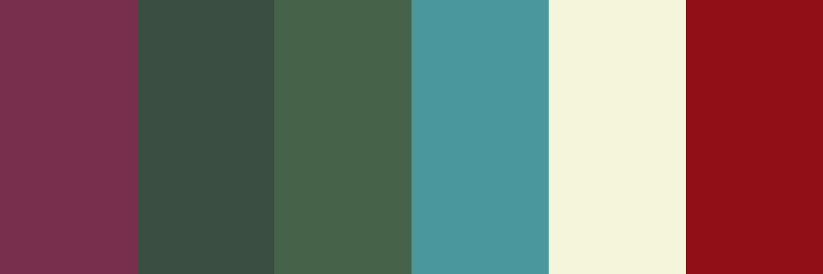 Deep Crimson ( #910F17 ) introduces a dramatic and rich tone that enhances the overall vibrancy and depth of the palette, reminiscent of deep red flowers and autumn leaves.