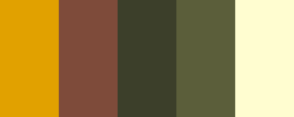 This color palette features a vibrant mustard yellow paired with warm earthy tones and rich greens, creating a balanced and inviting aesthetic. The cream softens the overall look, making it perfect for designs that aim for warmth and approachability.