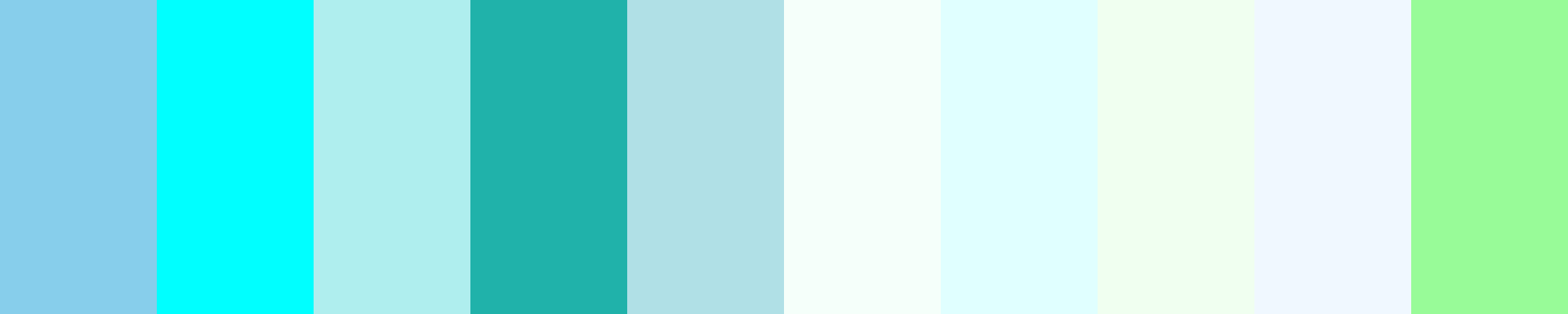 I Want A Color Palette That Has Blue And Green Shades, But The Shades Are Not Very Close. I Want The Colors To Be Distinguishable. It Should Be A Palette Of 10 Colors