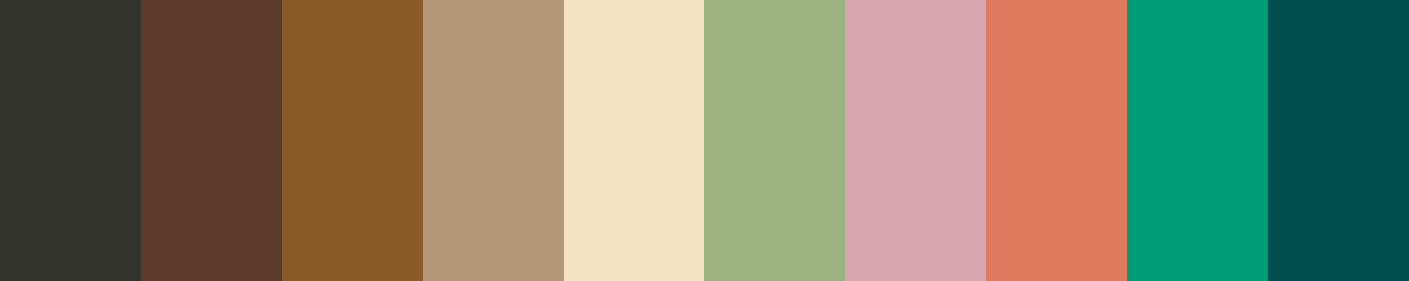 - A medium, warm brown that enhances the earthy feel of the palette, balancing the vibrant colors.