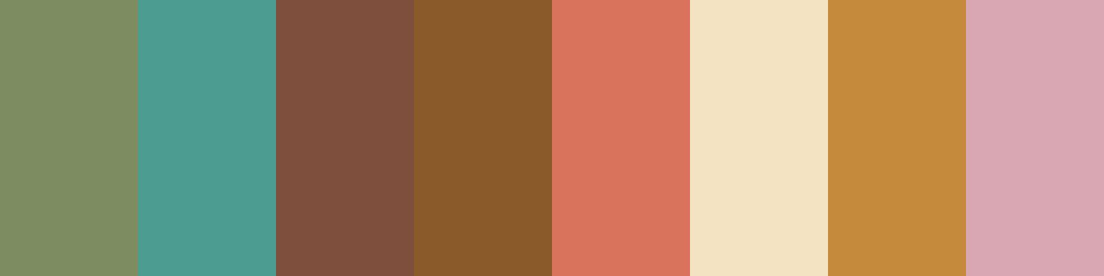 - A warm, medium brown that adds depth and richness, serving as a grounding element in the palette.