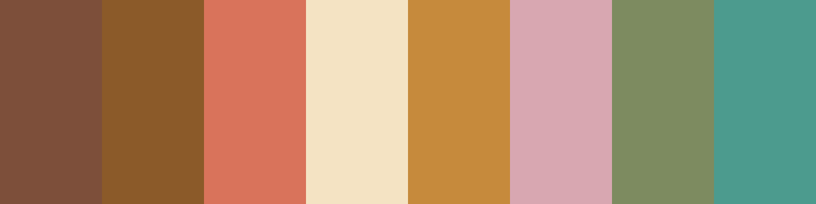 - A warm, medium brown that adds depth and richness, serving as a grounding element in the palette.