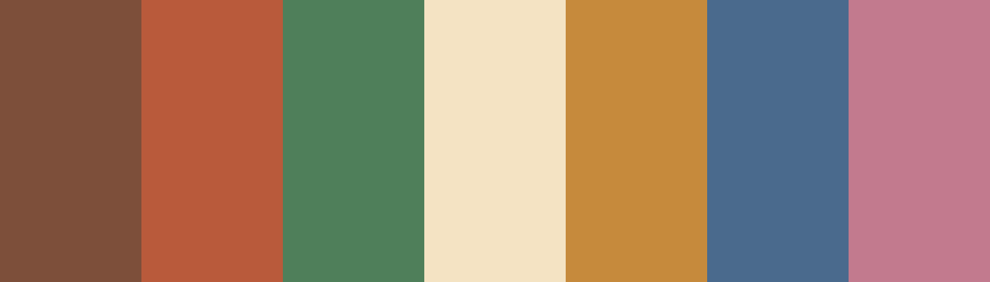 The “Nature’s Embrace” palette combines rich earthy tones with soft neutrals and muted colors, creating a harmonious and inviting atmosphere that is ideal for designs inspired by nature, comfort, and warmth.