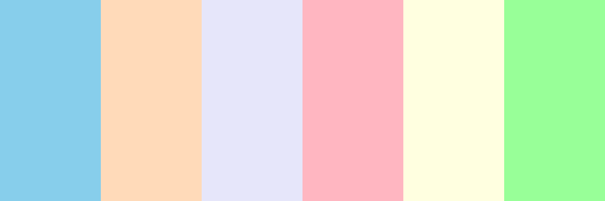 This color palette, “Soft Rainbow,” features a collection of pastel shades that create a soothing and cheerful atmosphere. The soft hues are reminiscent of a gentle rainbow, providing a harmonious blend ideal for designs that aim to evoke feelings of calmness, joy, and playfulness.