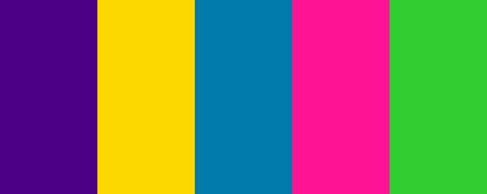 This palette features a harmonious blend of dark purple, bright yellow, cerulean blue, bright fuchsia, and bright lime green, creating a dynamic and cheerful atmosphere perfect for a café setting.