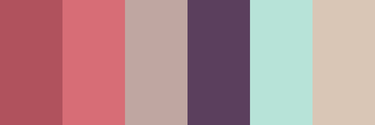 This cohesive color palette works beautifully with the main color #B0525D , creating a warm and inviting atmosphere. The soft coral and warm taupe complement the main hue, while the deep plum adds richness. The light mint introduces a refreshing balance, and the warm sand provides a neutral foundation.