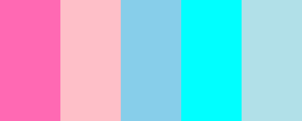 Overall Palette Description: This color palette combines playful and girly pink hues with refreshing and joyful blue shades. It captures the essence of happiness and excitement, creating a vibrant and cheerful atmosphere. It is perfect for designs targeting a youthful and energetic audience while maintaining a touch of elegance.