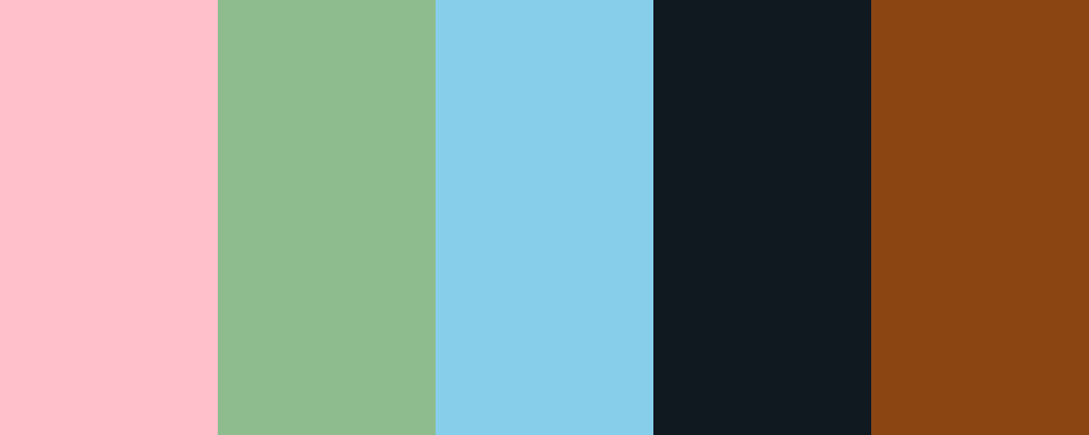 This palette captures the soft pinks of cherry blossoms, the vibrant greens of leaves, the serene blue sky, the deep black of beetles, and the earthy tones of the ground.