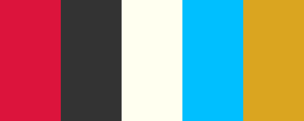 This palette highlights the striking crimson color while incorporating complementary tones like charcoal gray for depth, ivory for a soft contrast, deep sky blue for vibrancy, and goldenrod for warmth. It’s perfect for designs that aim for a bold yet elegant aesthetic.