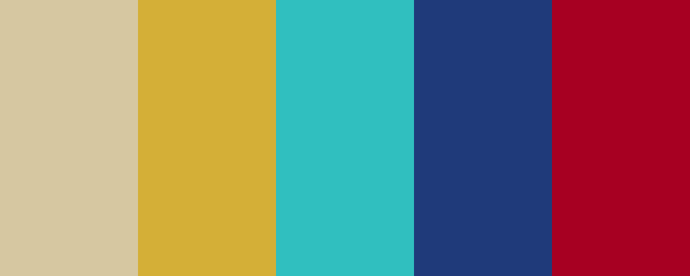 This palette captures the essence of Egyptian artifacts with a combination of gold representing wealth and divinity, turquoise symbolizing protection, sandy beige for the desert, deep blue reflecting the Nile, and crimson red for life and vitality.