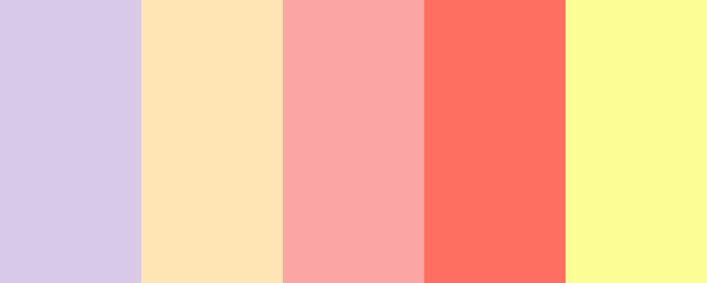This palette maintains a cheerful and uplifting feel with a blend of soft pastels and a bright coral blush for a pop of color.