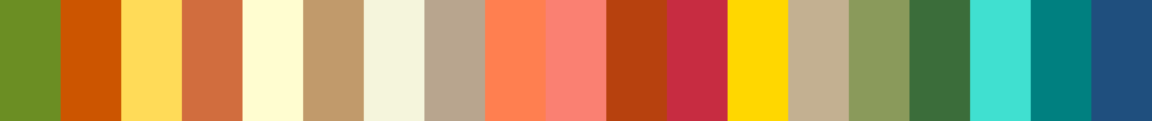 This palette combines warm earthy tones with soft neutrals and vibrant hues, inspired by natural landscapes. Would you like to explore more about a specific color, or need help with something else?