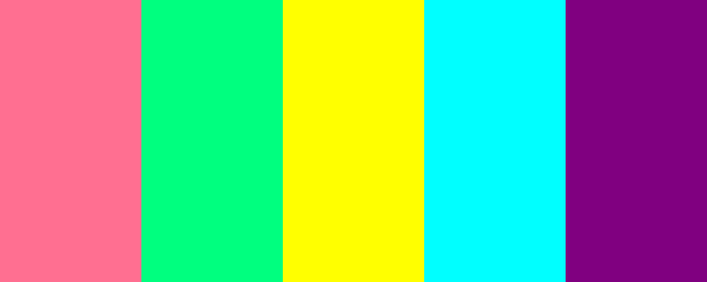 This palette combines the striking neon pink with vibrant complementary colors that create a lively and energetic look. The electric green and bright yellow provide a bold contrast, while vivid cyan and deep purple add depth to the scheme.