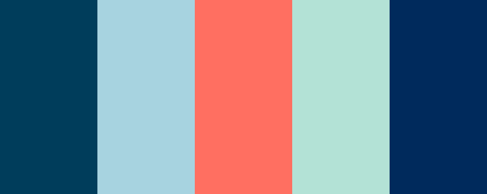 This palette captures the calming and vibrant essence of ocean waters, with deep blues, refreshing aquas, and hints of coral.
