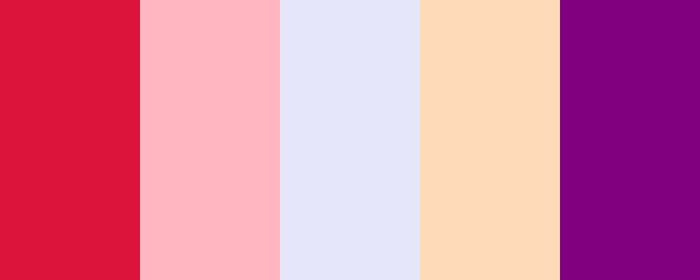 This palette features warm and soft colors that evoke feelings of love and affection. The rich crimson red symbolizes passion, while the soft pink and peach tones add a gentle, tender touch. Lavender brings a sense of calm and serenity, complemented by the deep purple that adds depth to the palette.