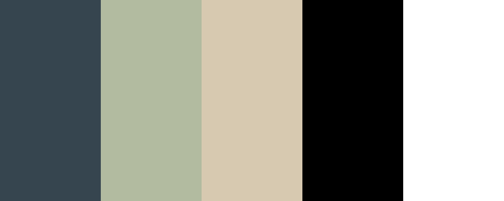This palette combines the deep, sophisticated tone of charcoal with the calming nature of sage green, while warm taupe adds a soft, earthy touch. Black and white provide a classic contrast, making this palette versatile for various design styles.