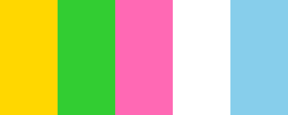 This palette captures the essence of a bright and cheerful spring day, with blues for the sky, yellows for the sun, greens for the fresh grass, pinks for blooming flowers, and whites for soft clouds.