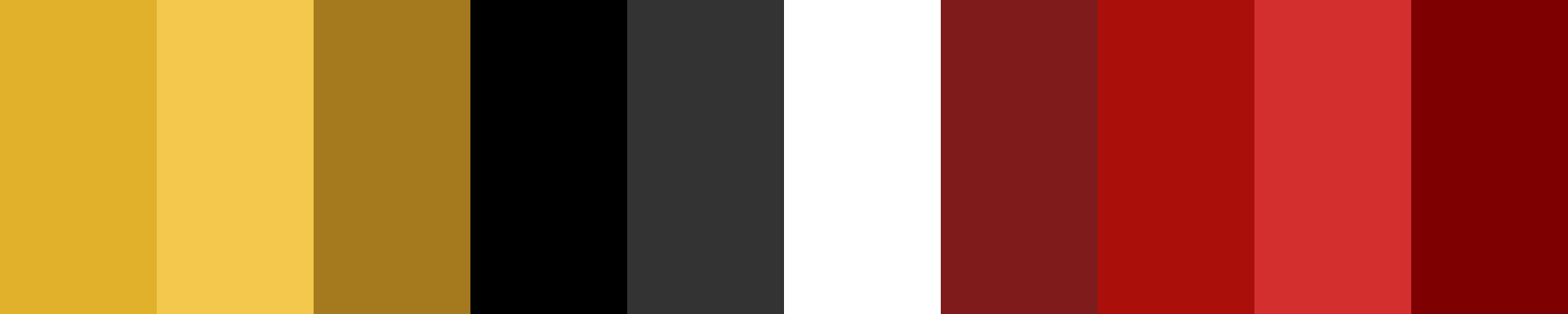 Sure! Here are the lighter and darker shades for both your primary color (Crimson Red - #AB0F09 ) and the suggested secondary color (Mustard Yellow - #E1B12C ).