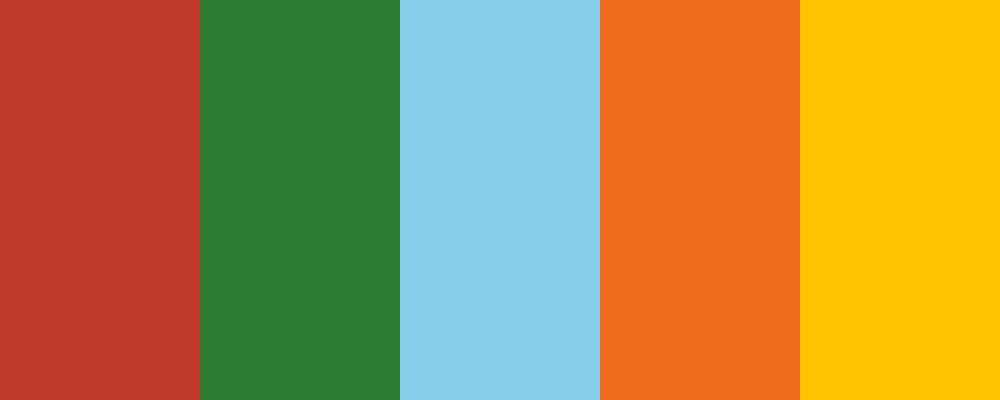 The “Autumn Blaze” palette captures the warmth and vibrancy of fall with a mix of burnt orange, golden yellow, deep red, forest green, and sky blue. It evokes feelings of a crisp autumn day and the beauty of changing leaves.