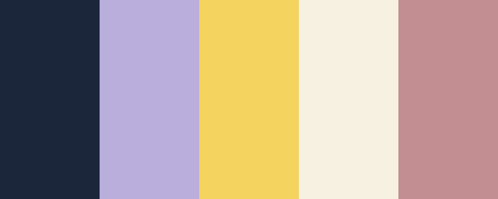 This palette, “Midnight Dreams,” combines the richness of deep midnight blue with soft lavender, balanced by warm gold and creamy parchment for a soothing aesthetic. The dusty rose adds a touch of warmth and romance to the overall theme.