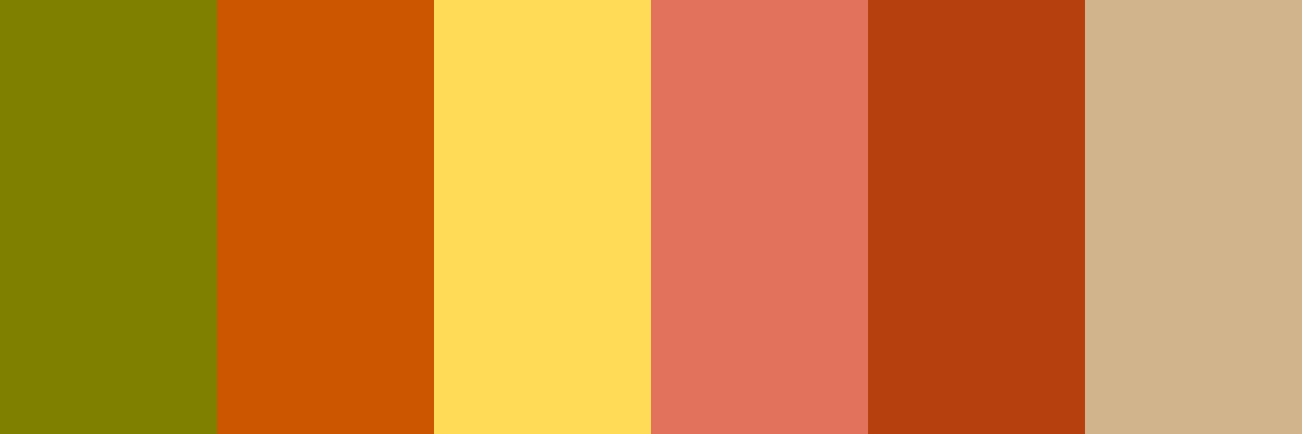 This color palette, named “Earthy Warmth,” is characterized by its grounding and vibrant tones inspired by nature. The combination of Olive Green, Burnt Orange, and Mustard Yellow creates a warm and inviting atmosphere, while Terracotta and Rust add depth and richness. The neutral Tan/Camel balances the palette, making it versatile for various design applications.